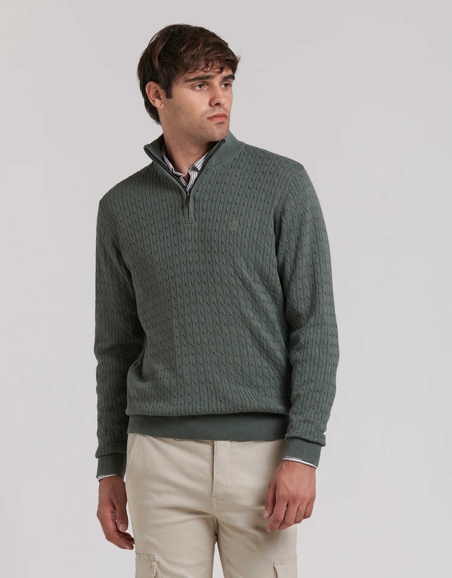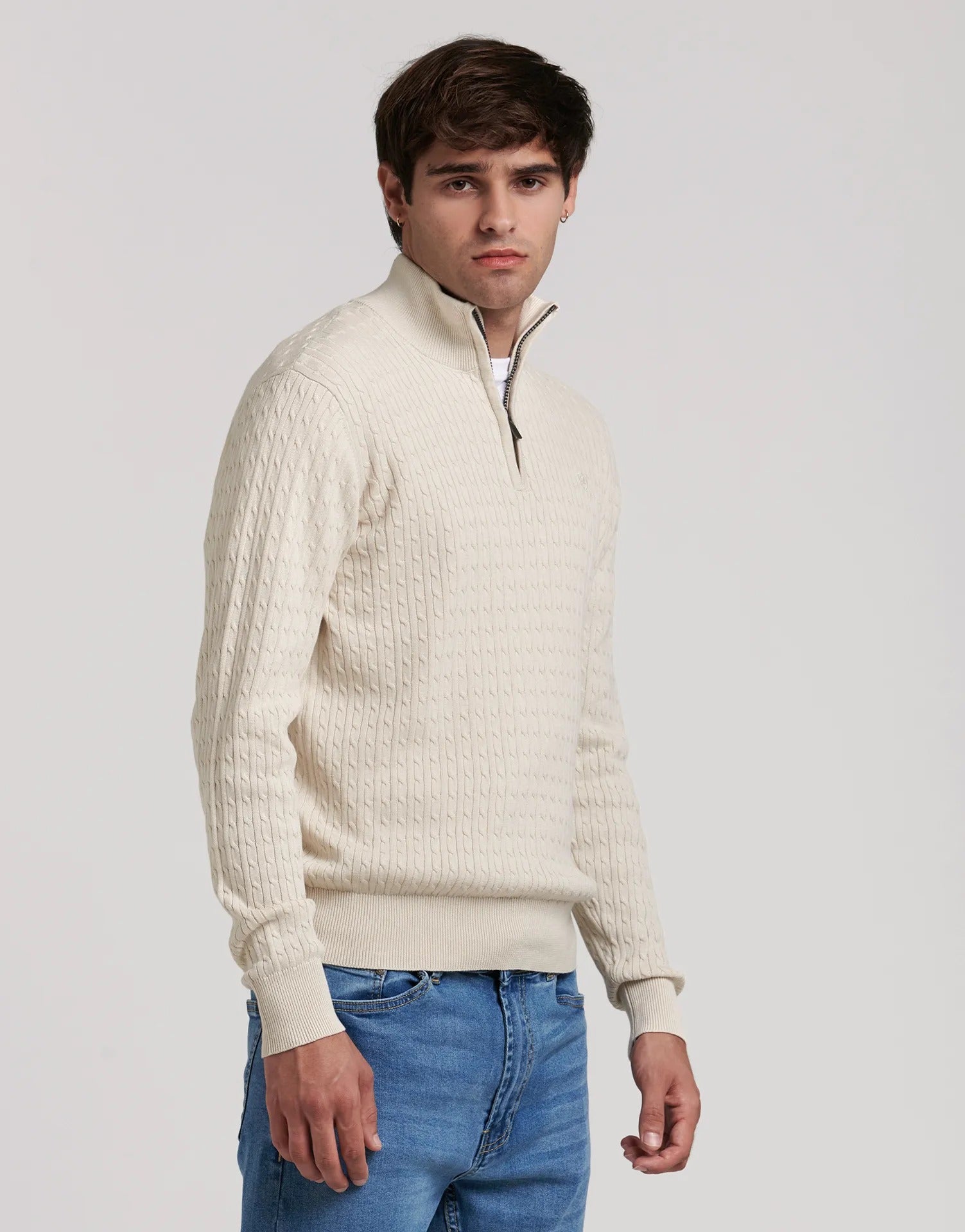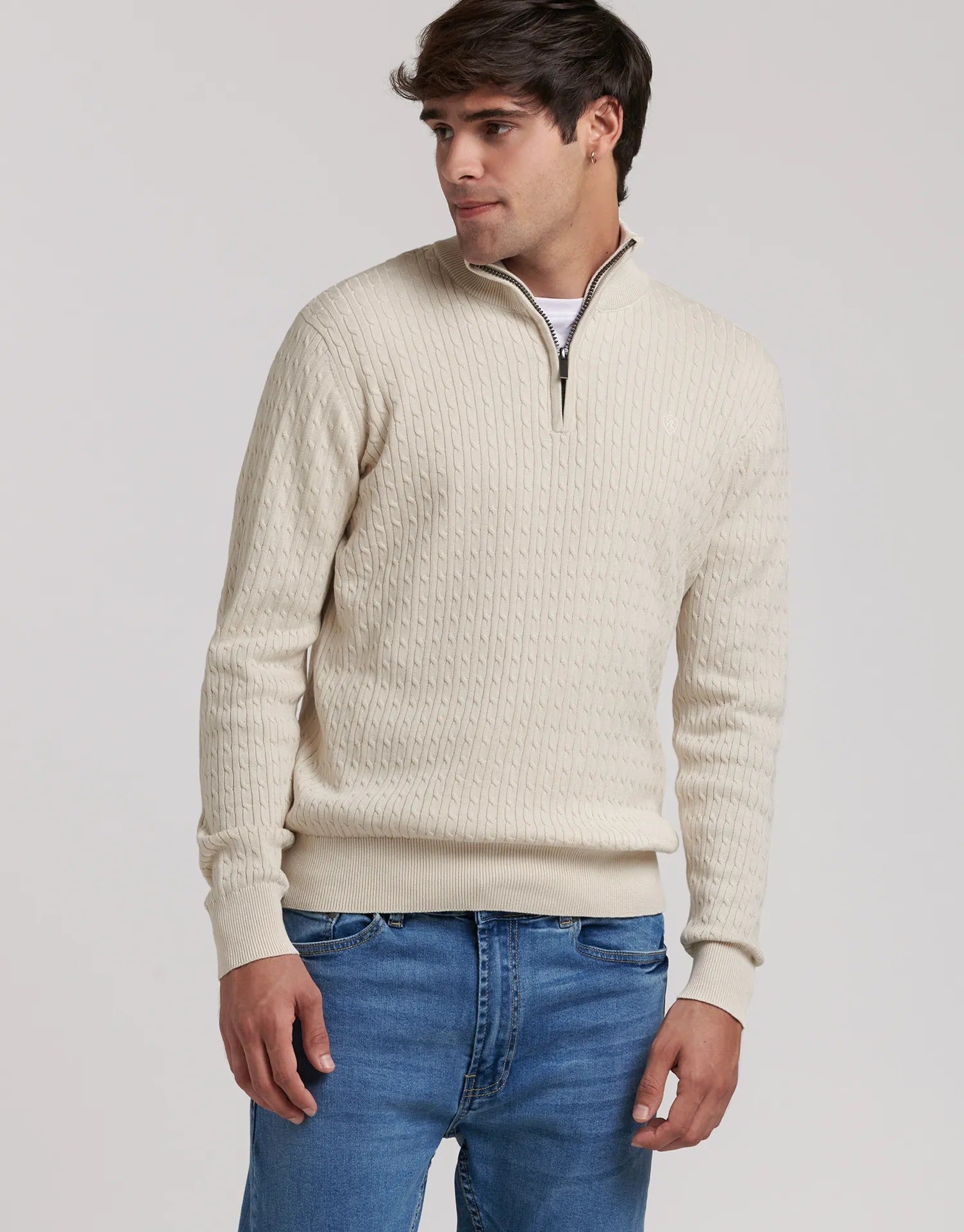 Jersey trenzado con media cremallera Clásico y versátil