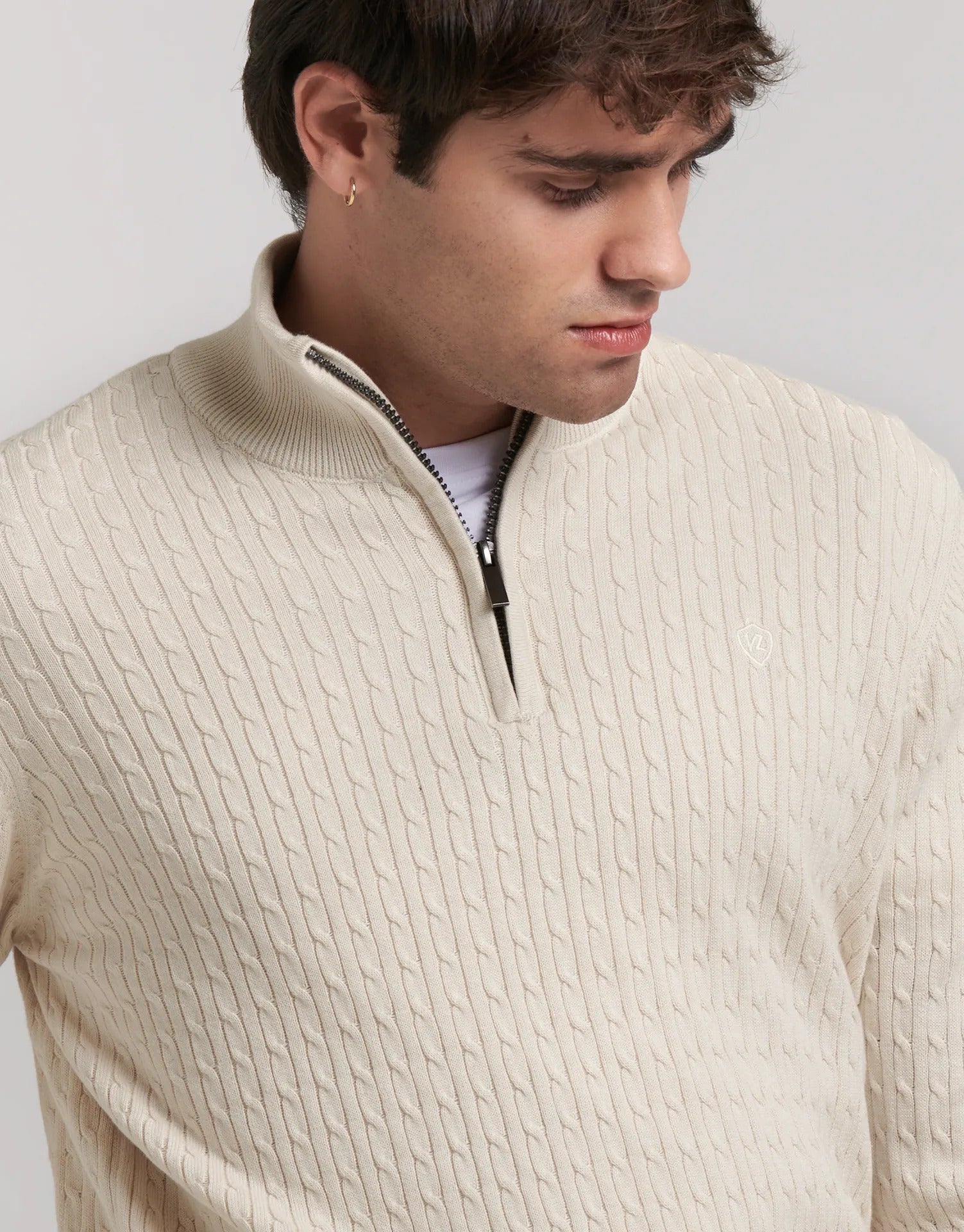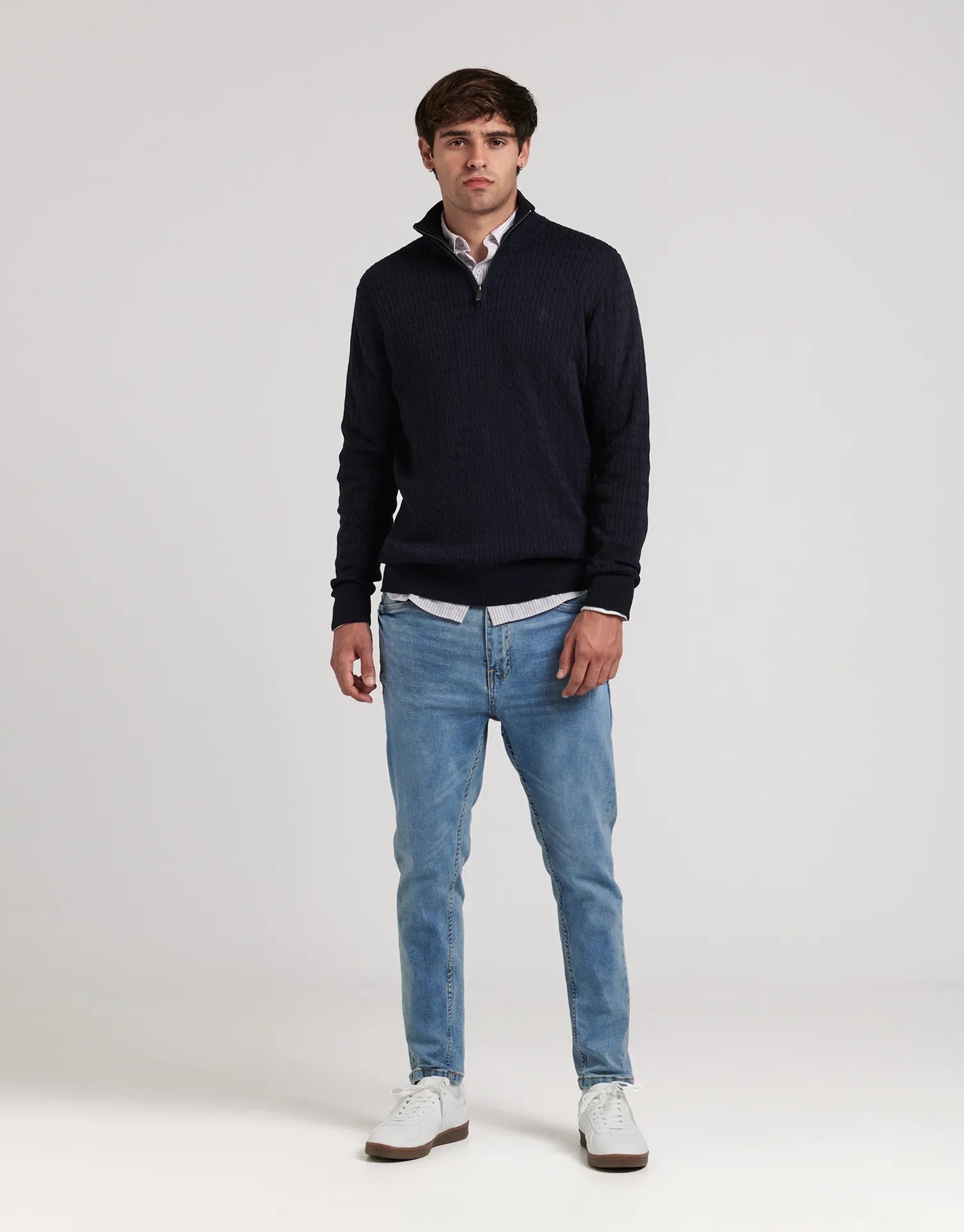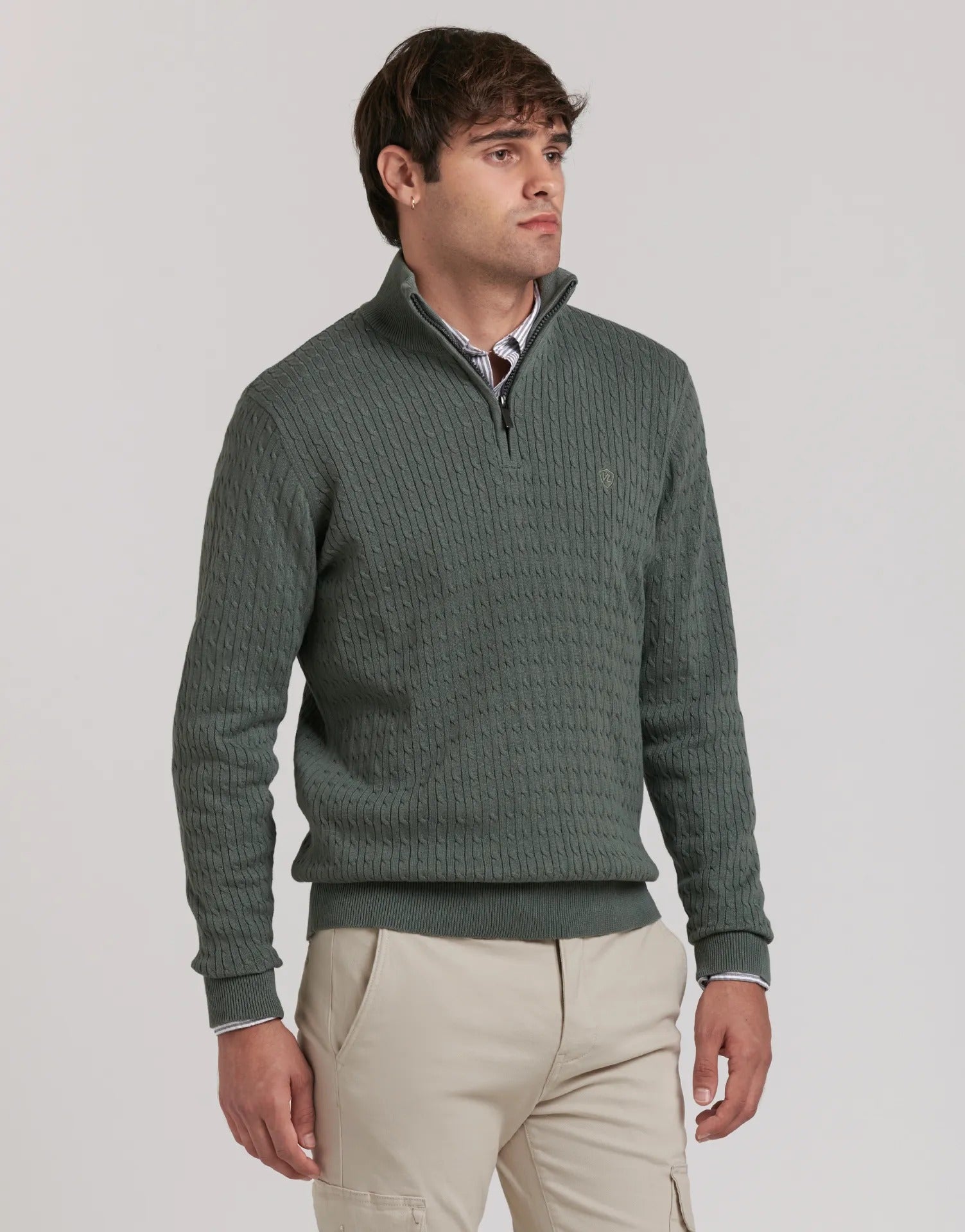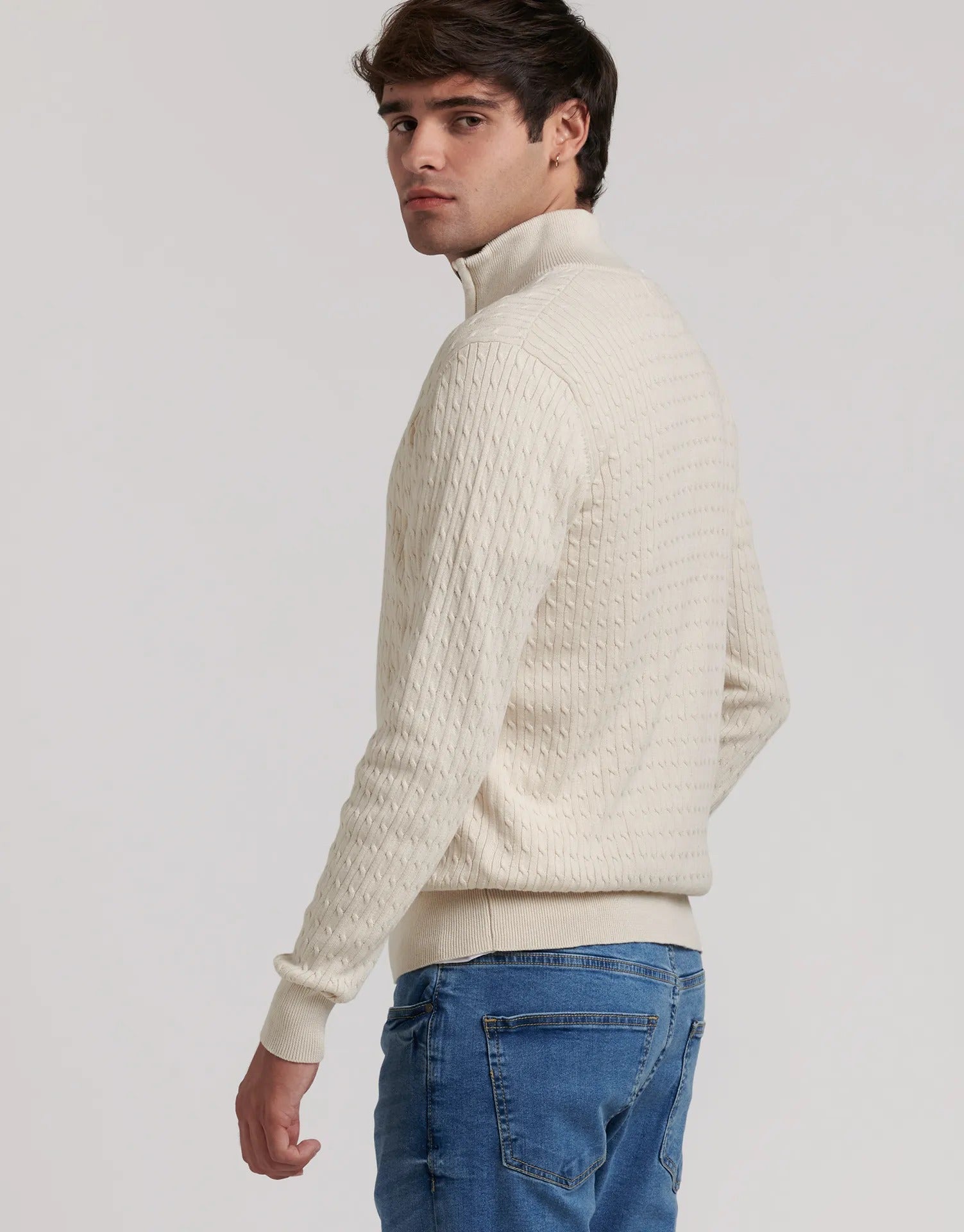 Jersey trenzado con media cremallera Clásico y versátil
