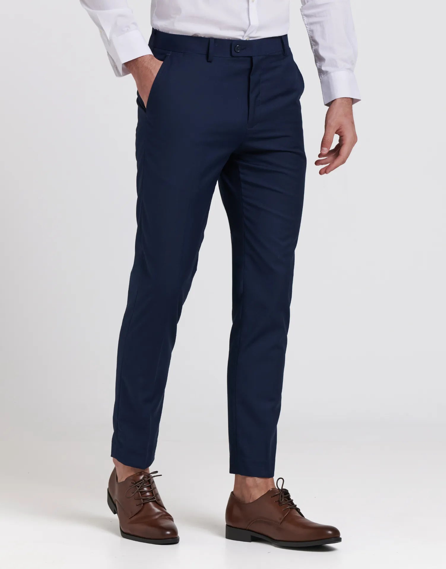 *CHAQUETA Y PANTALÓN SE VENDEN POR SEPARADO | Pantalón de traje corte Slim fit, ligeramente ceñido. Cierre frontal mediante botón prolongado y cremallera. Dos bolsillos en la parte delantera y dos bolsillos traseros de vivo con cierre mediante botón.