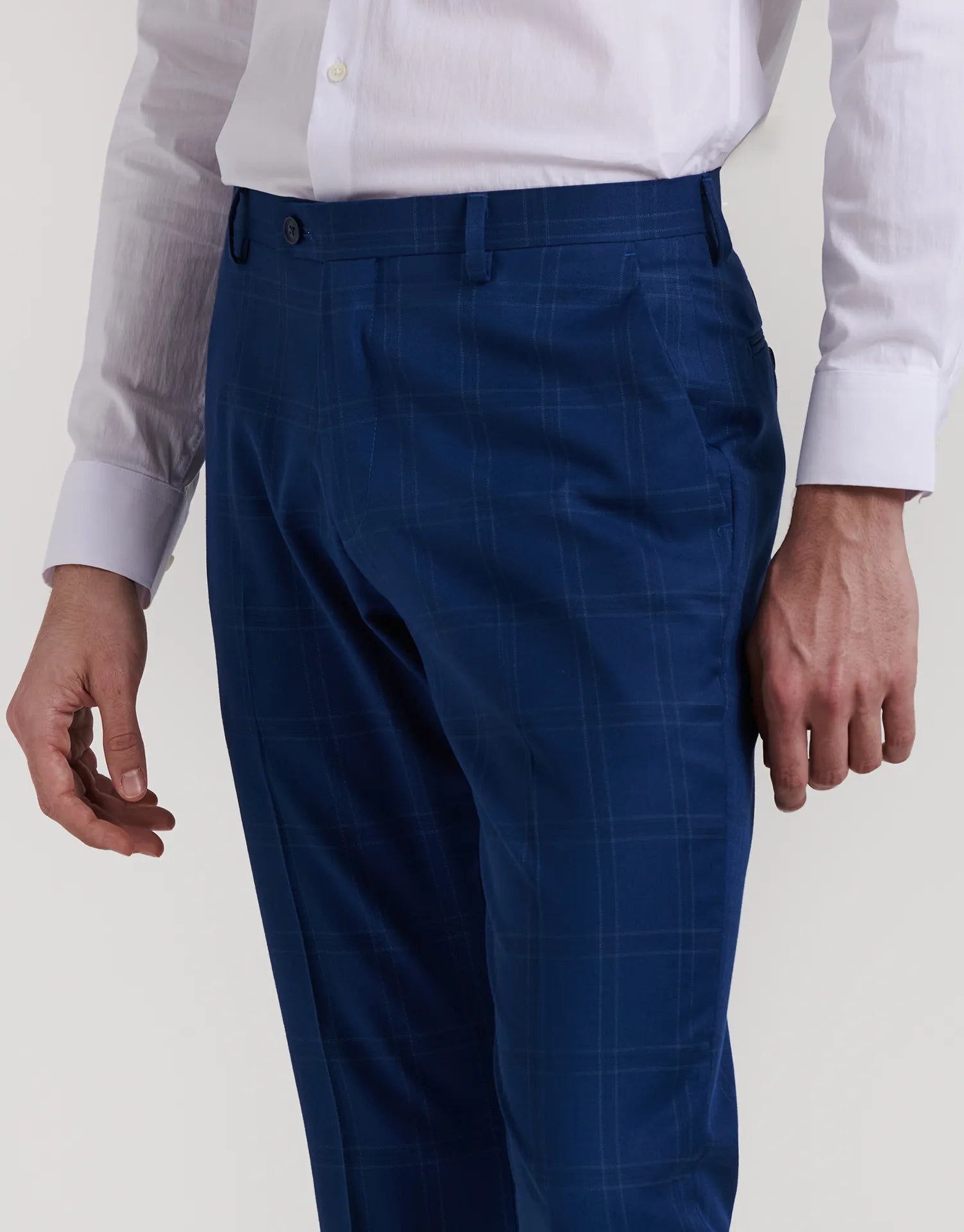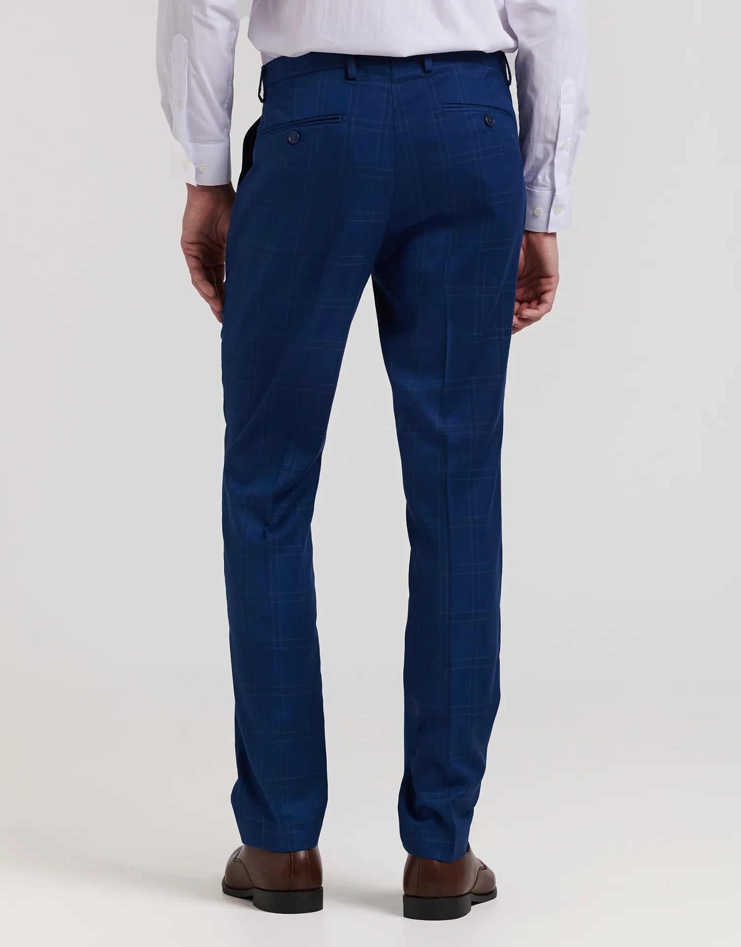 *CHAQUETA Y PANTALÓN SE VENDEN POR SEPARADO | Pantalón de traje con estampado de cuadros. Corte Regular Fit. Cierre mediante botón desplazado. Dos bolsillos laterales y dos bolsillos de ojal abotonado en la parte posterior. | Composición: 80% poliéster y 20% viscosa.