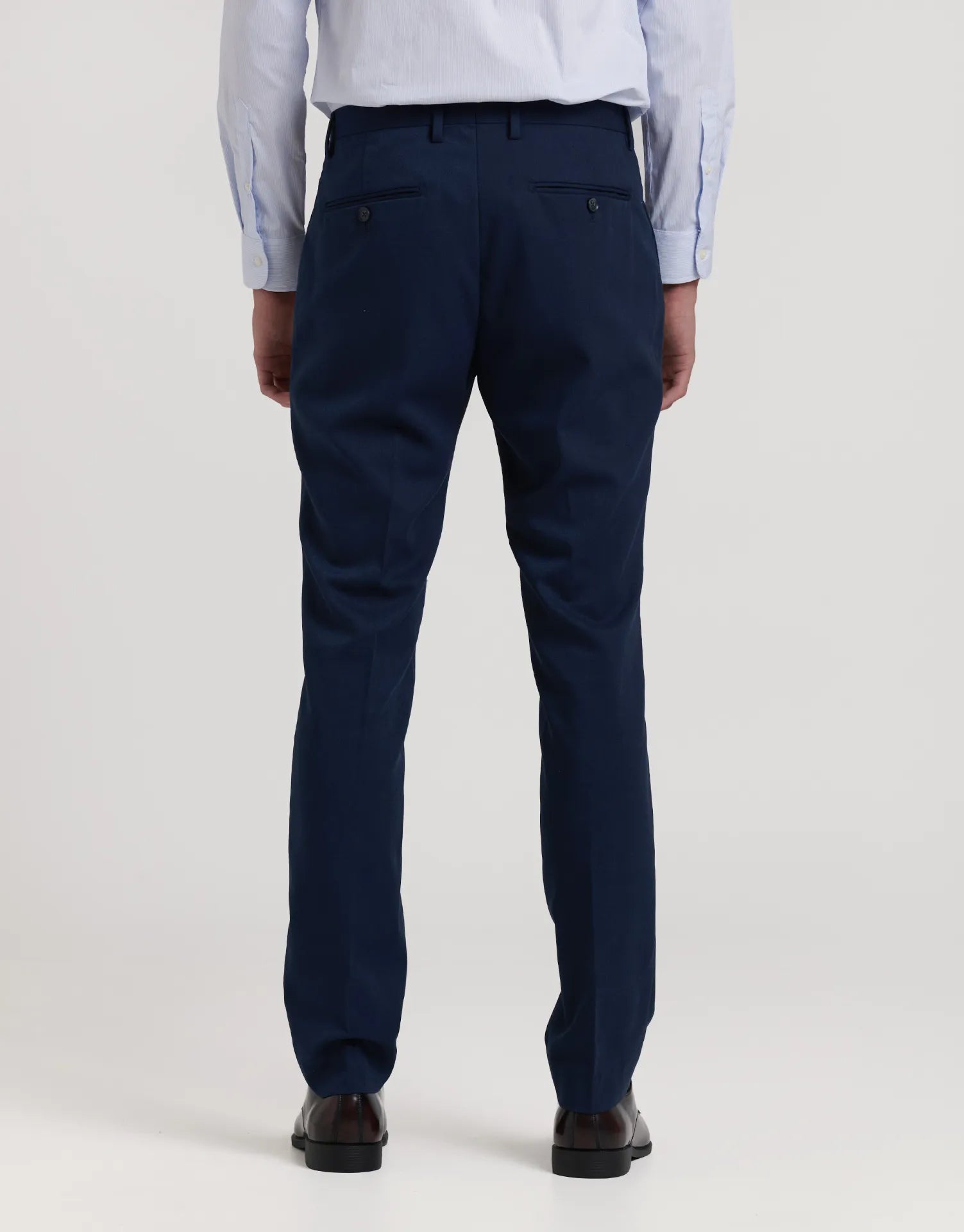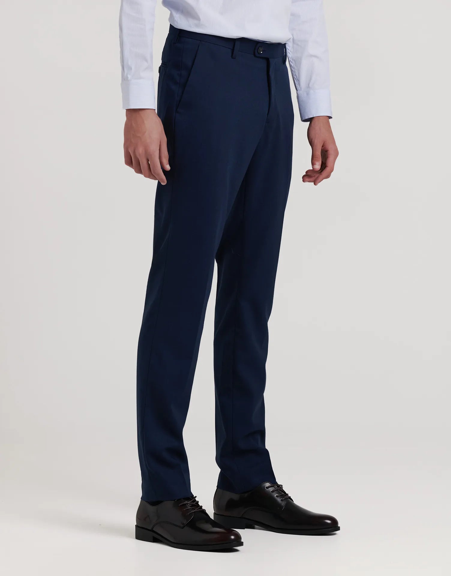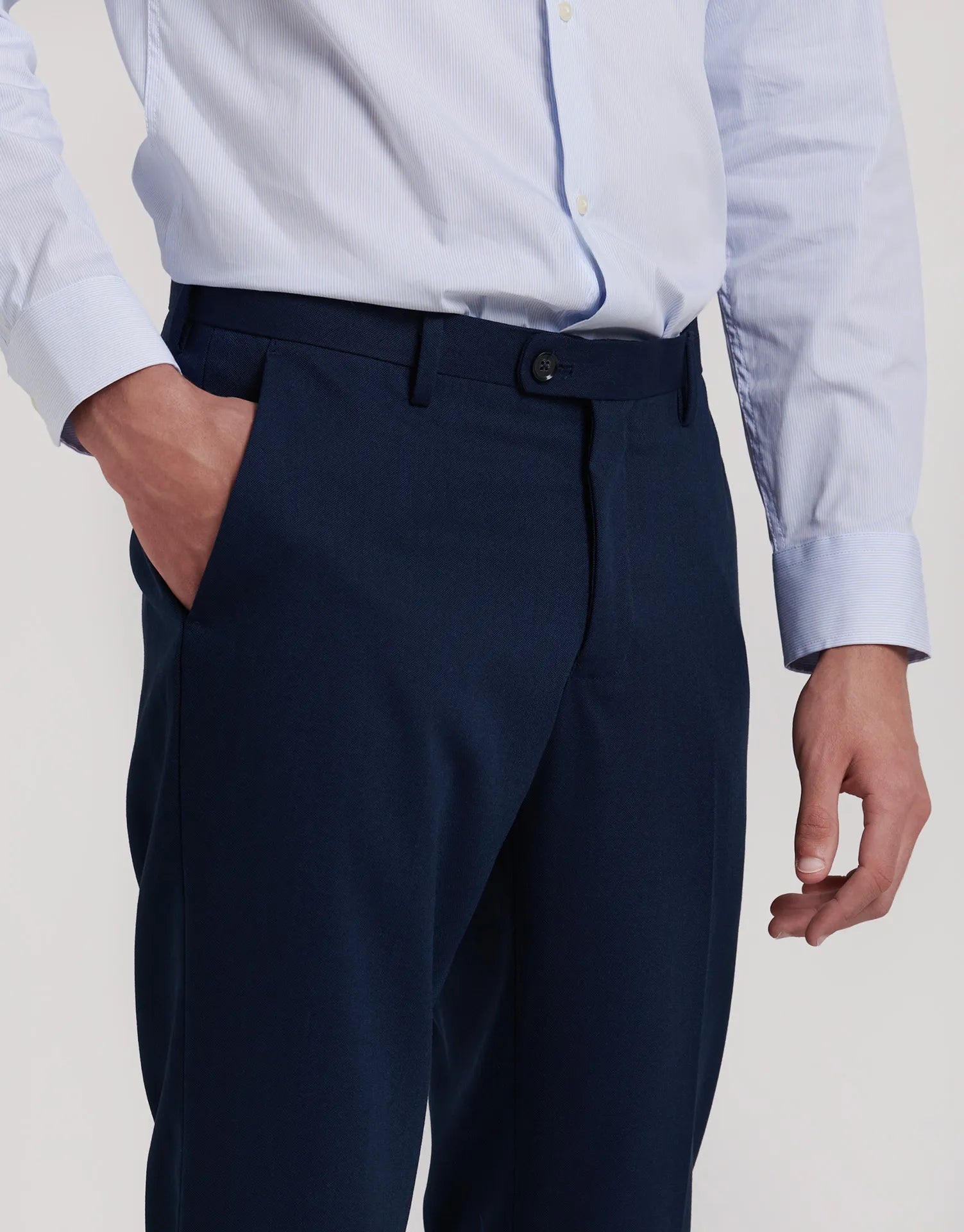 *CHAQUETA Y PANTALÓN SE VENDEN POR SEPARADO | Pantalón de traje corte regular fit en tejido de mezcla, ligeramente ceñido. Cierre frontal mediante botón prolongado y cremallera. Dos bolsillos en la parte delantera y un bolsillo trasero de vivo con cierre mediante botón. | Composición: 81% poliester, 17% viscosa y 2% elastano.