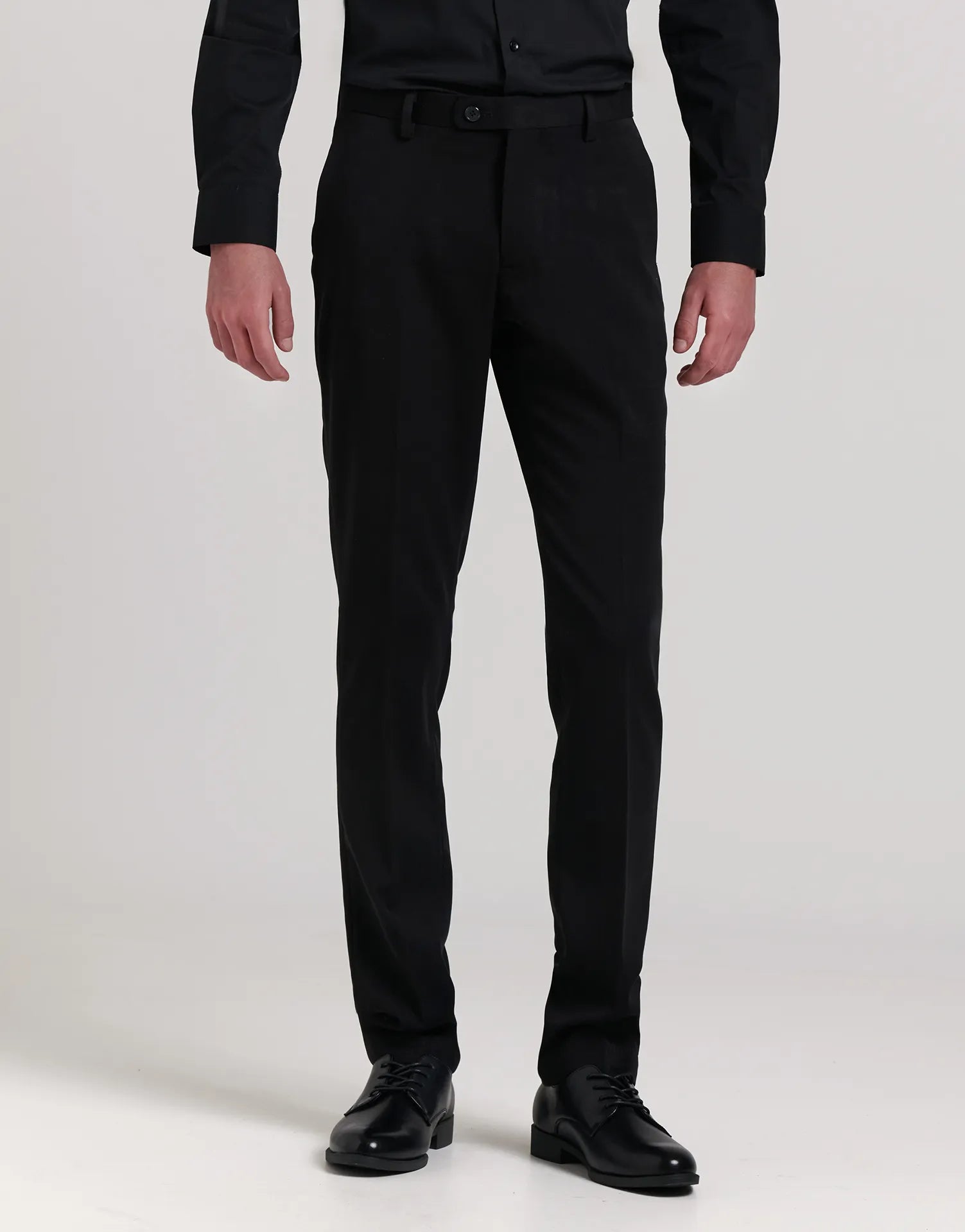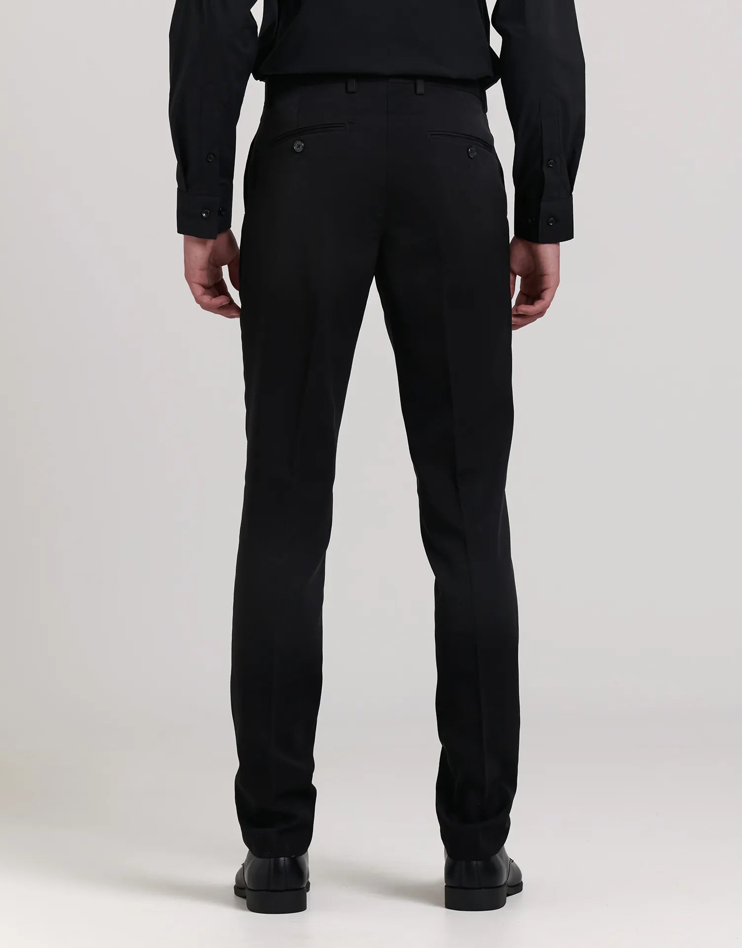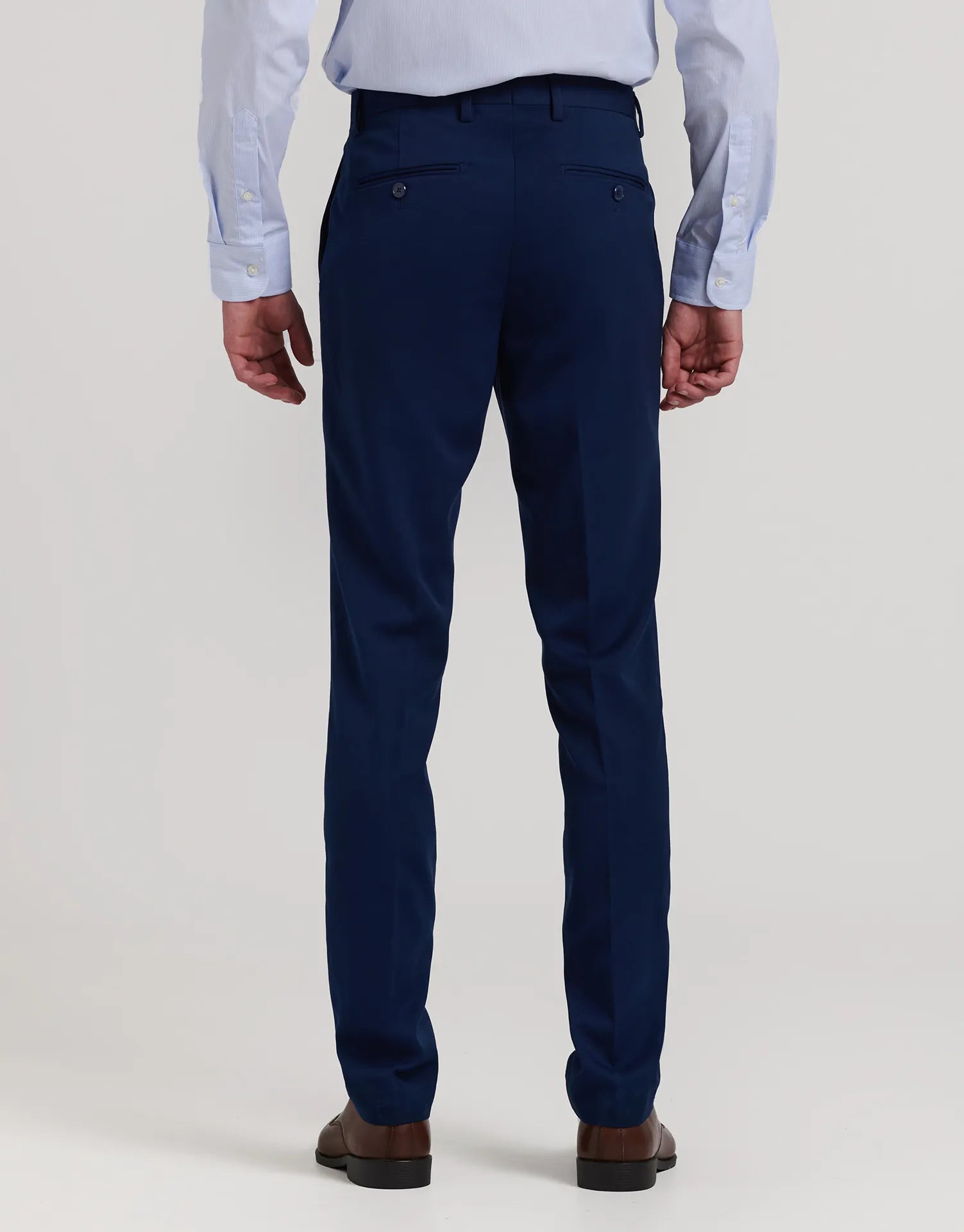 *CHAQUETA Y PANTALÓN SE VENDEN POR SEPARADO | Pantalón de traje corte Slim fit, ligeramente ceñido. Acabado satinado. Cierre frontal mediante botón prolongado y cremallera. Dos bolsillos en la parte delantera y dos bolsillos traseros de vivo con cierre mediante botón. | Composición: 77% poliéster, 21% viscosa, 2% elastano.