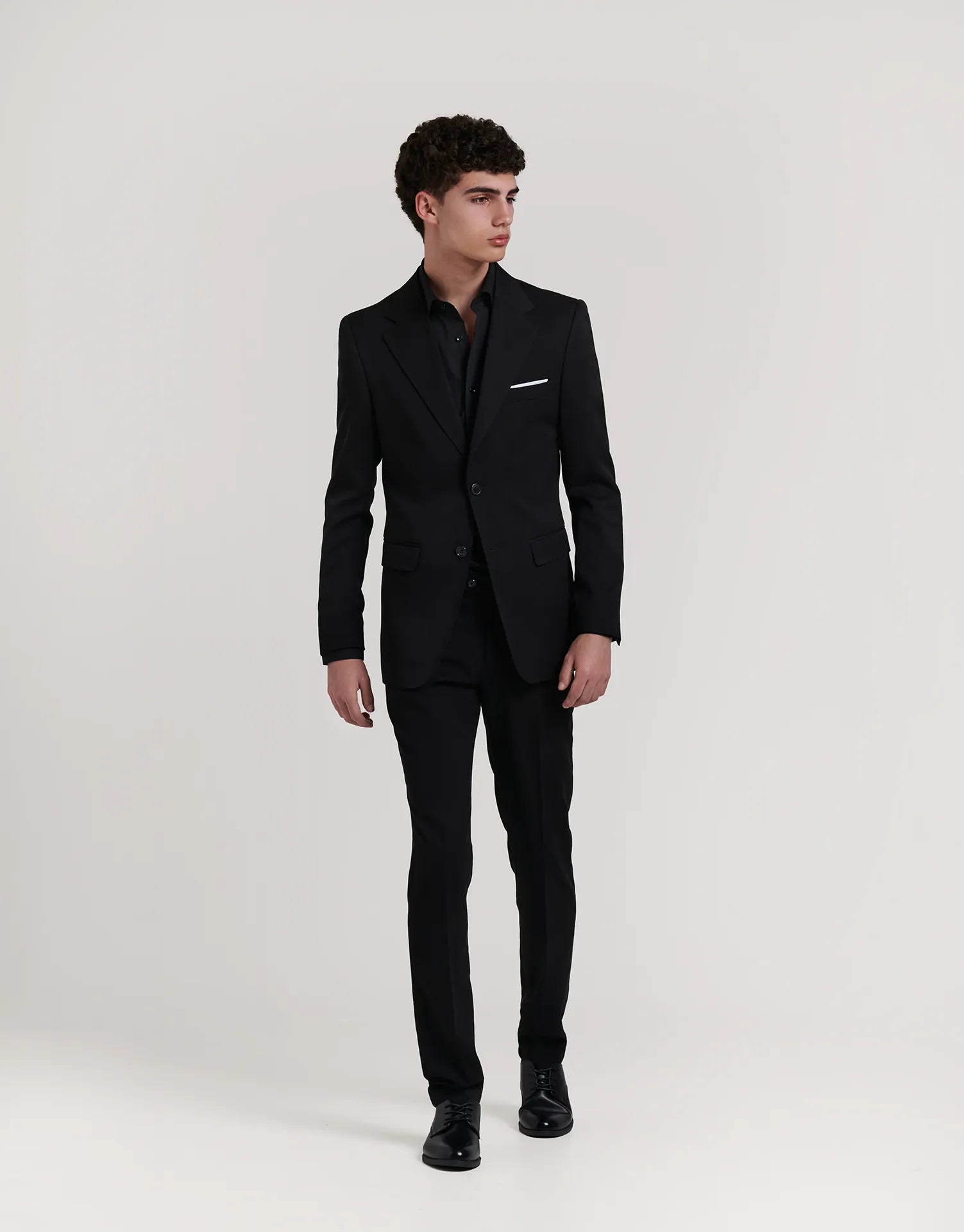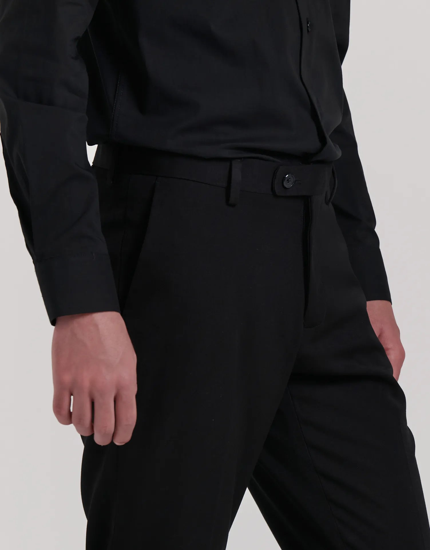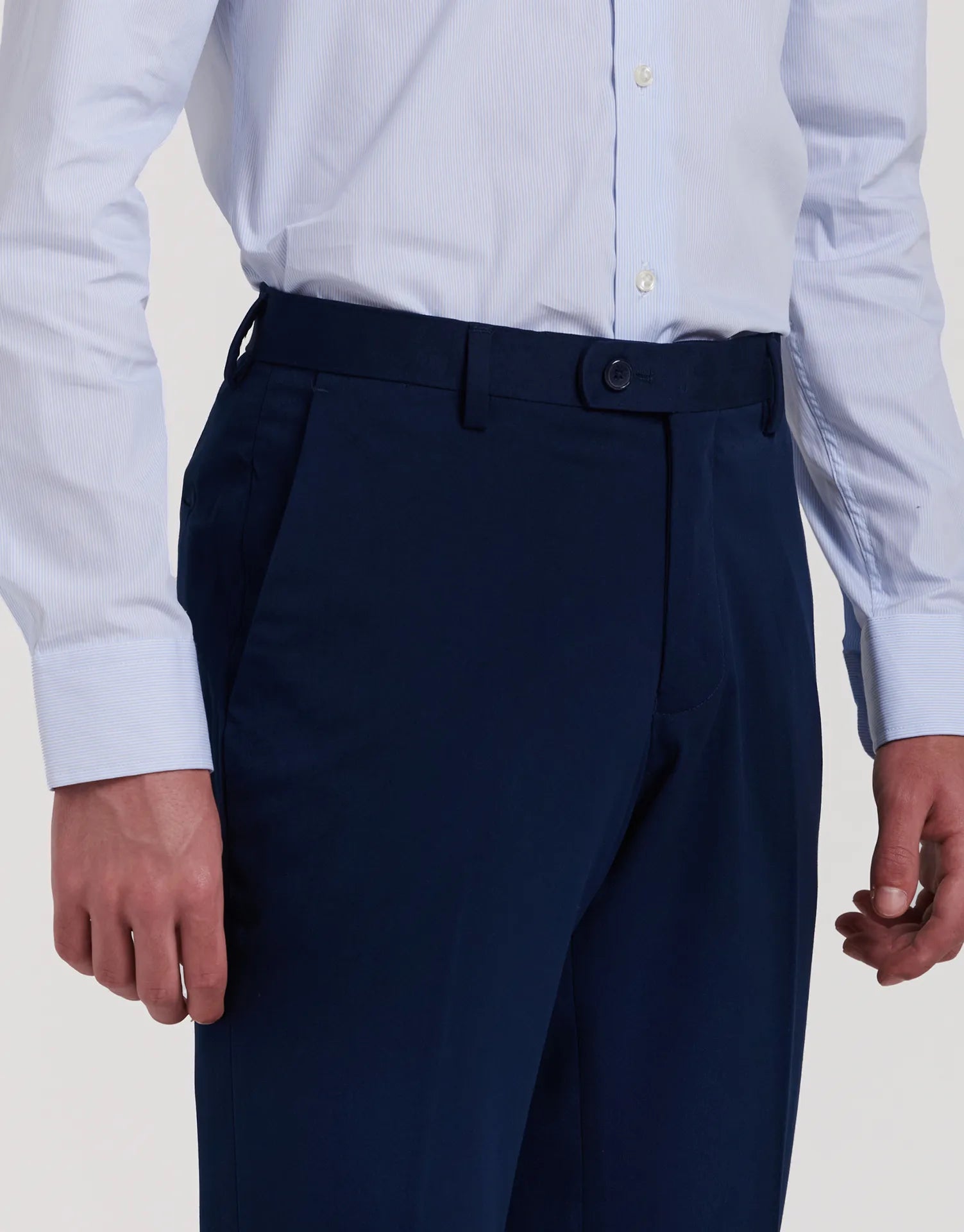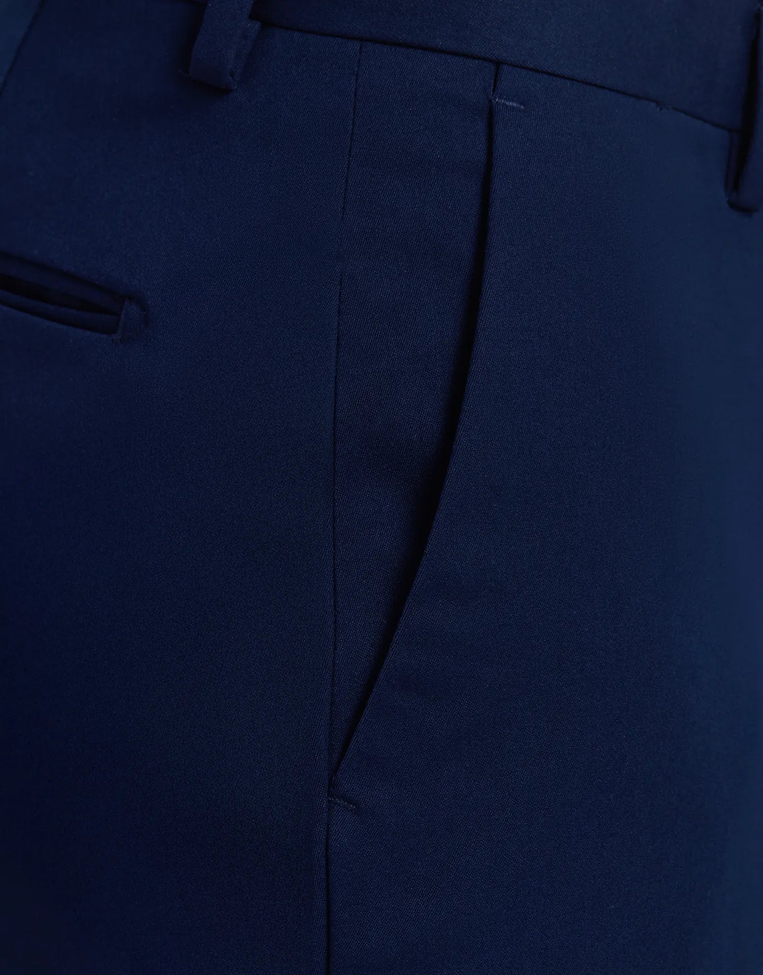 *CHAQUETA Y PANTALÓN SE VENDEN POR SEPARADO | Pantalón de traje corte Slim fit, ligeramente ceñido. Acabado satinado. Cierre frontal mediante botón prolongado y cremallera. Dos bolsillos en la parte delantera y dos bolsillos traseros de vivo con cierre mediante botón. | Composición: 77% poliéster, 21% viscosa, 2% elastano.