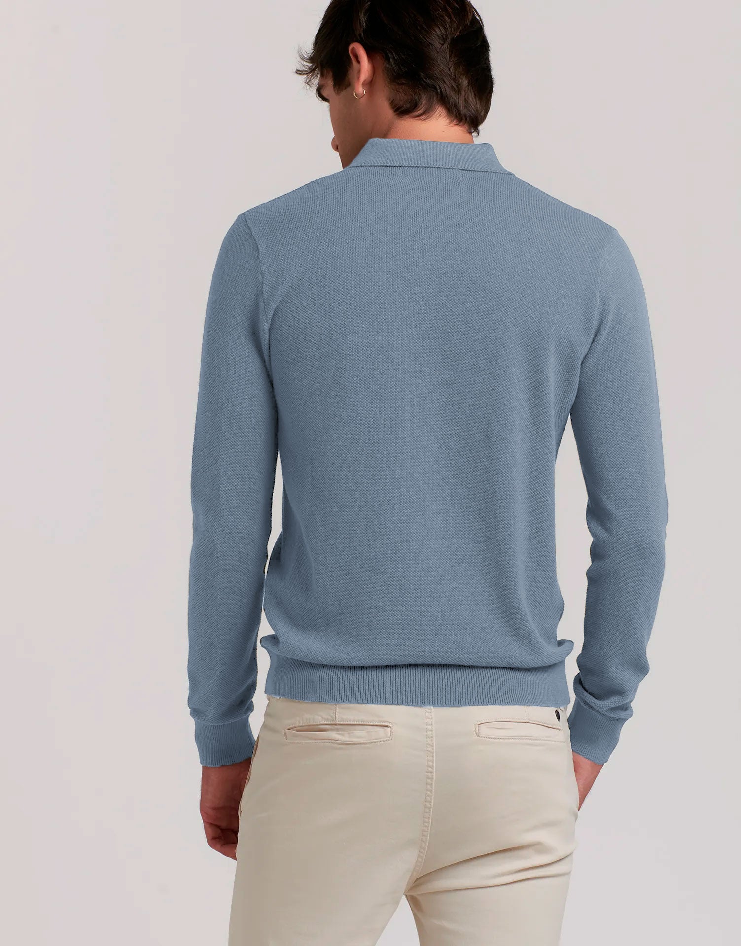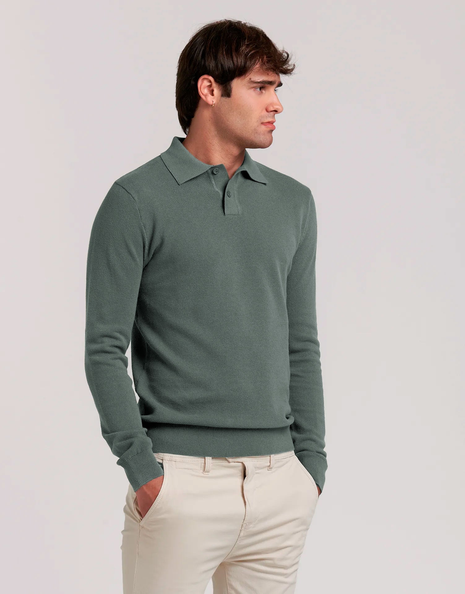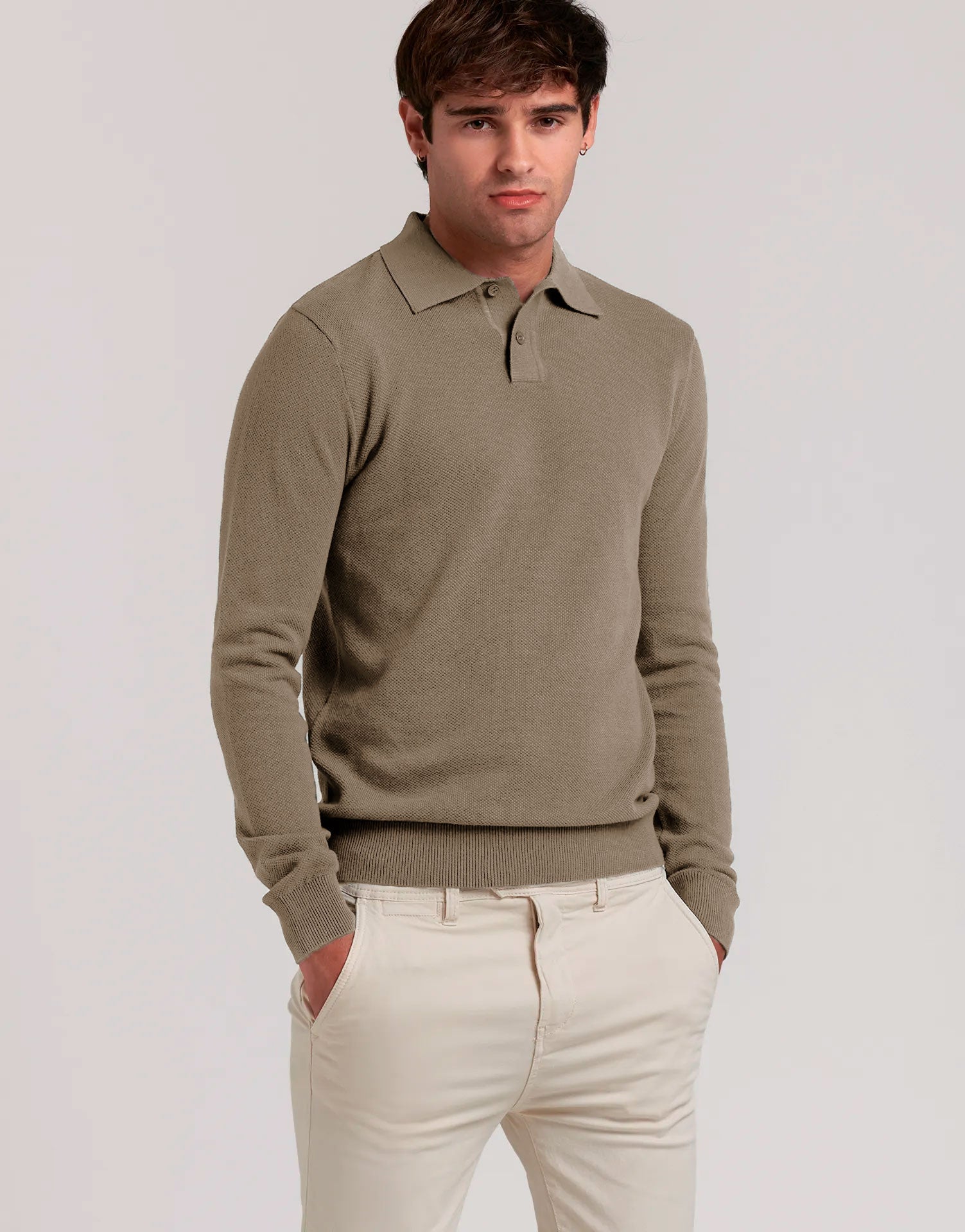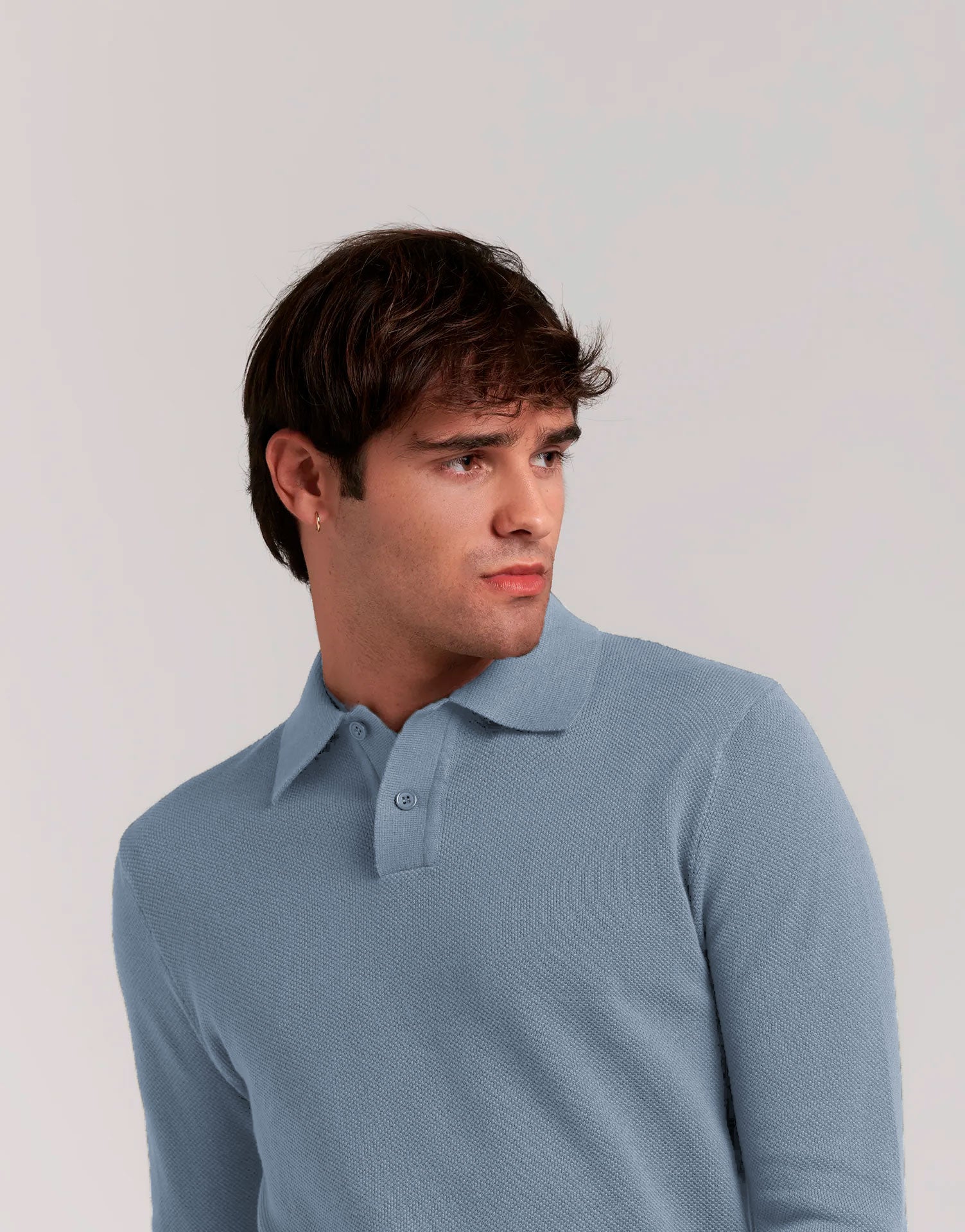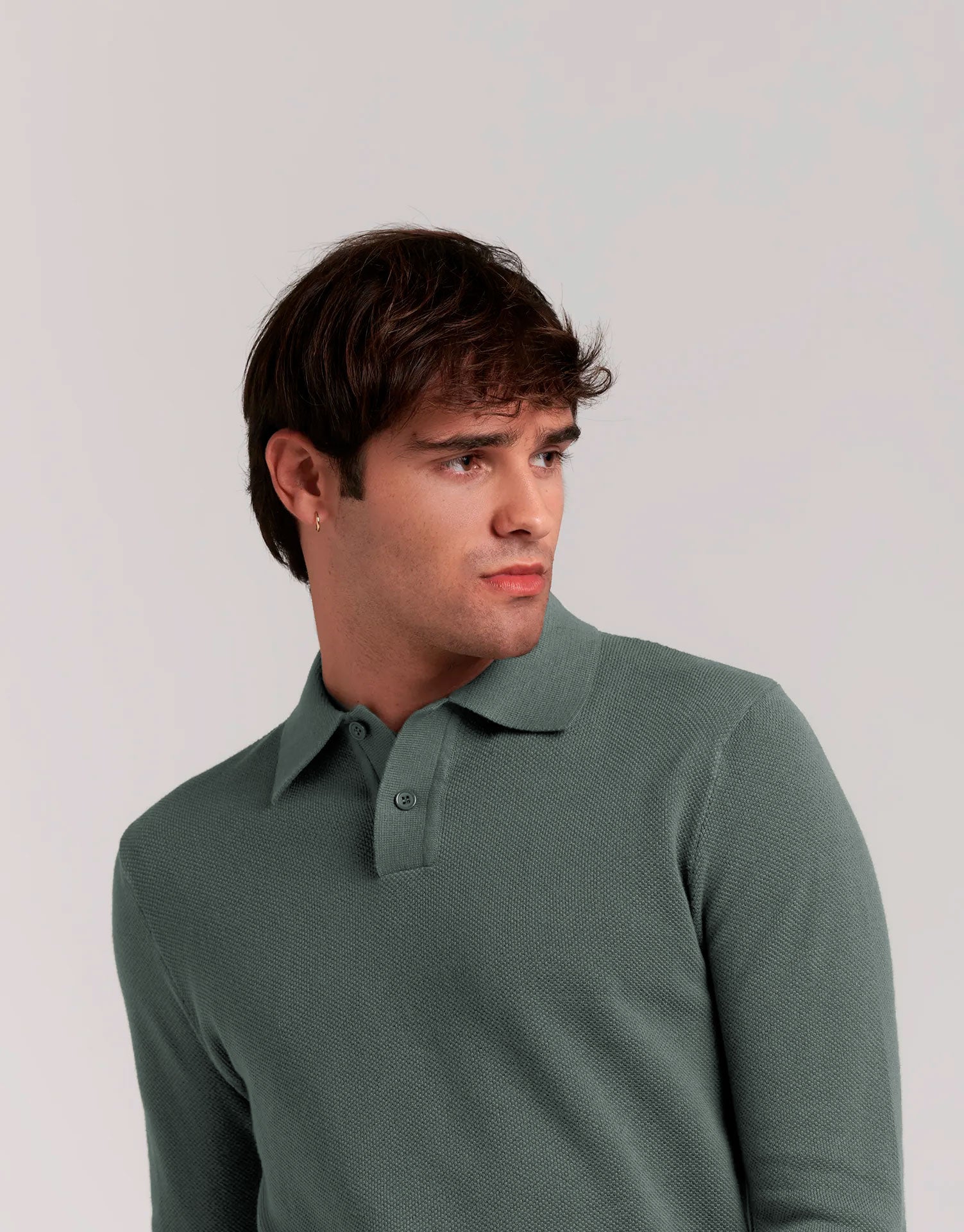 Este polo de manga larga en tejido de punto combina la elegancia del estilo clásico con la comodidad de un jersey ligero. Su confección en punto suave ofrece una textura agradable al tacto y un ajuste cómodo, ideal para looks casuales o más cuidados.