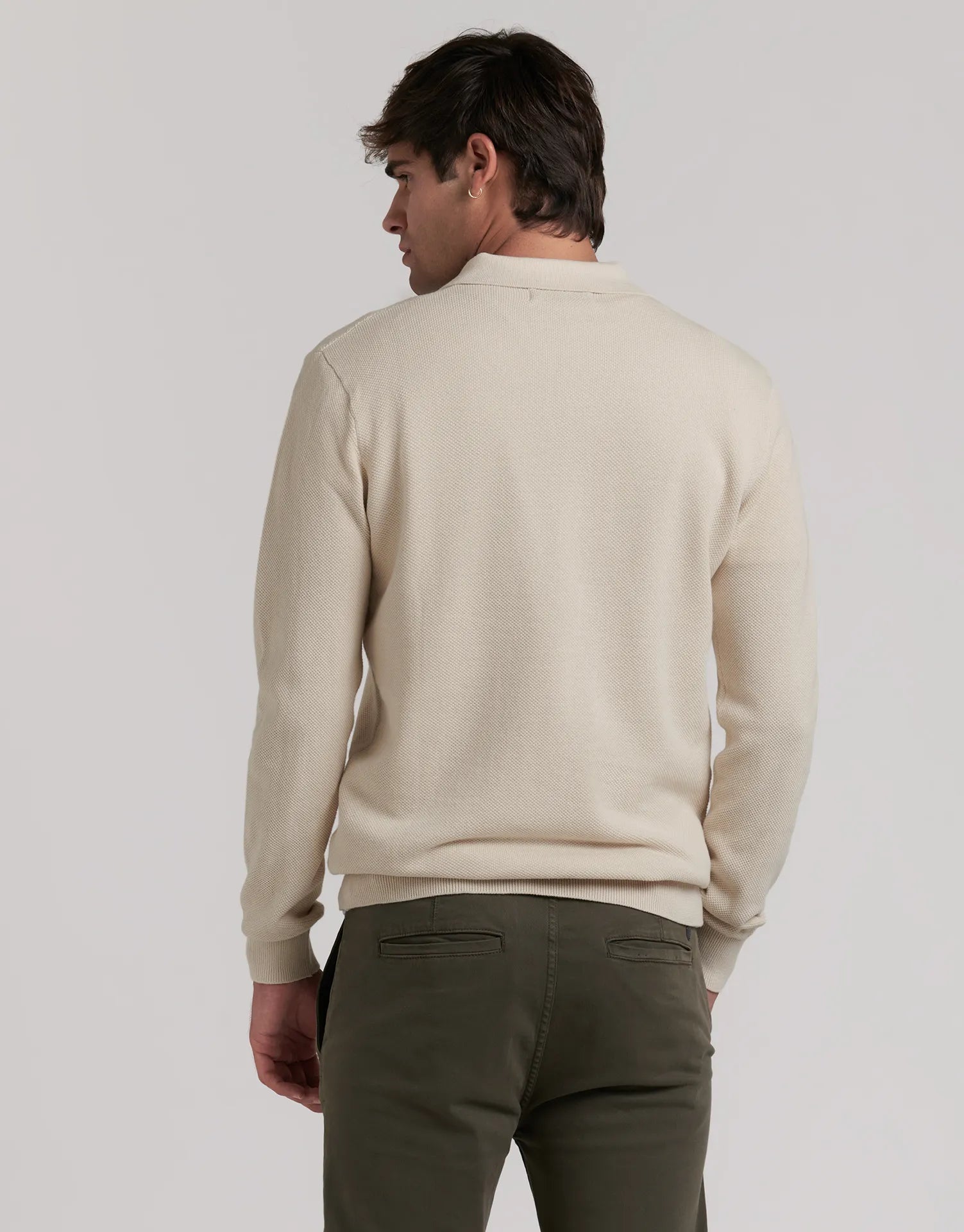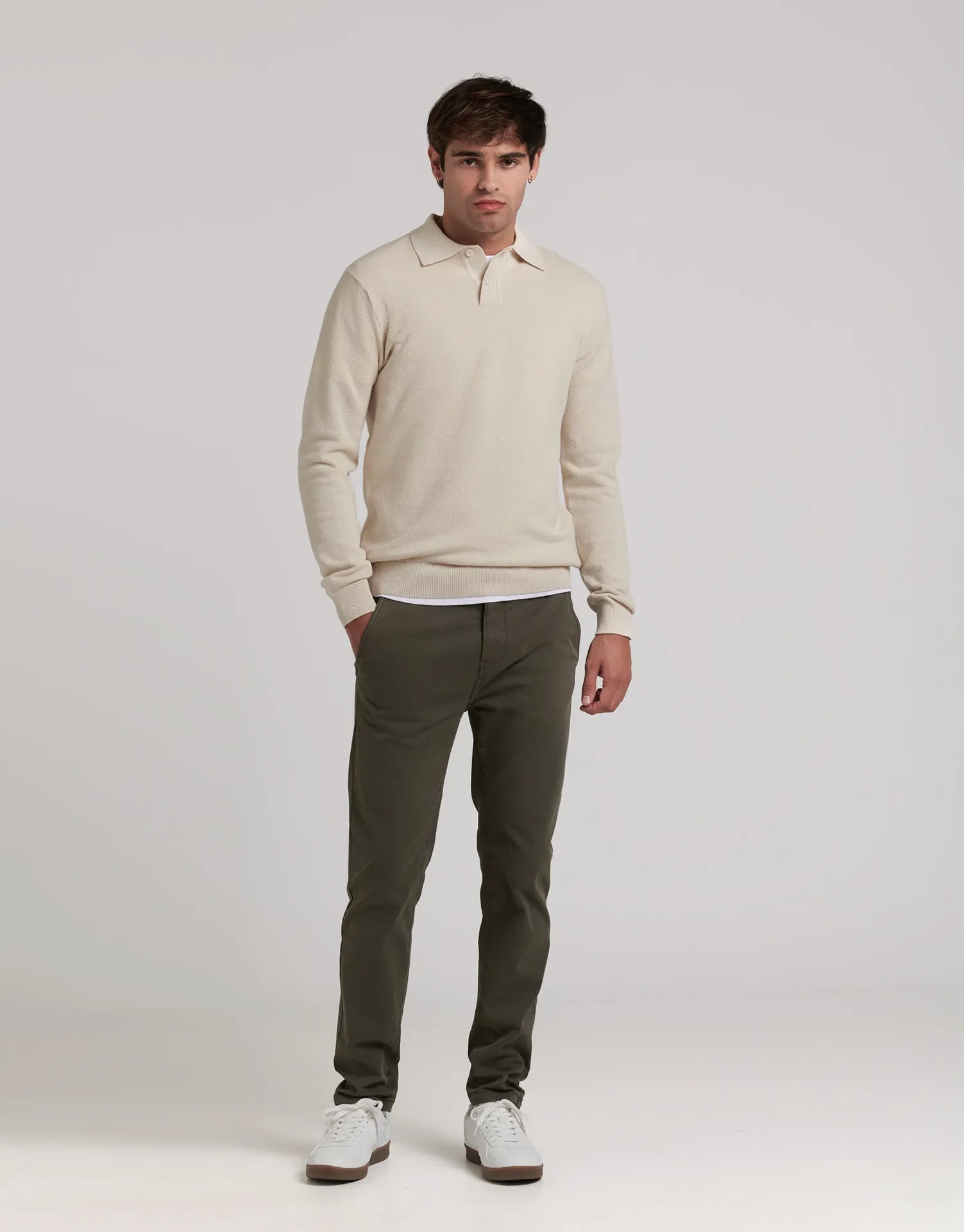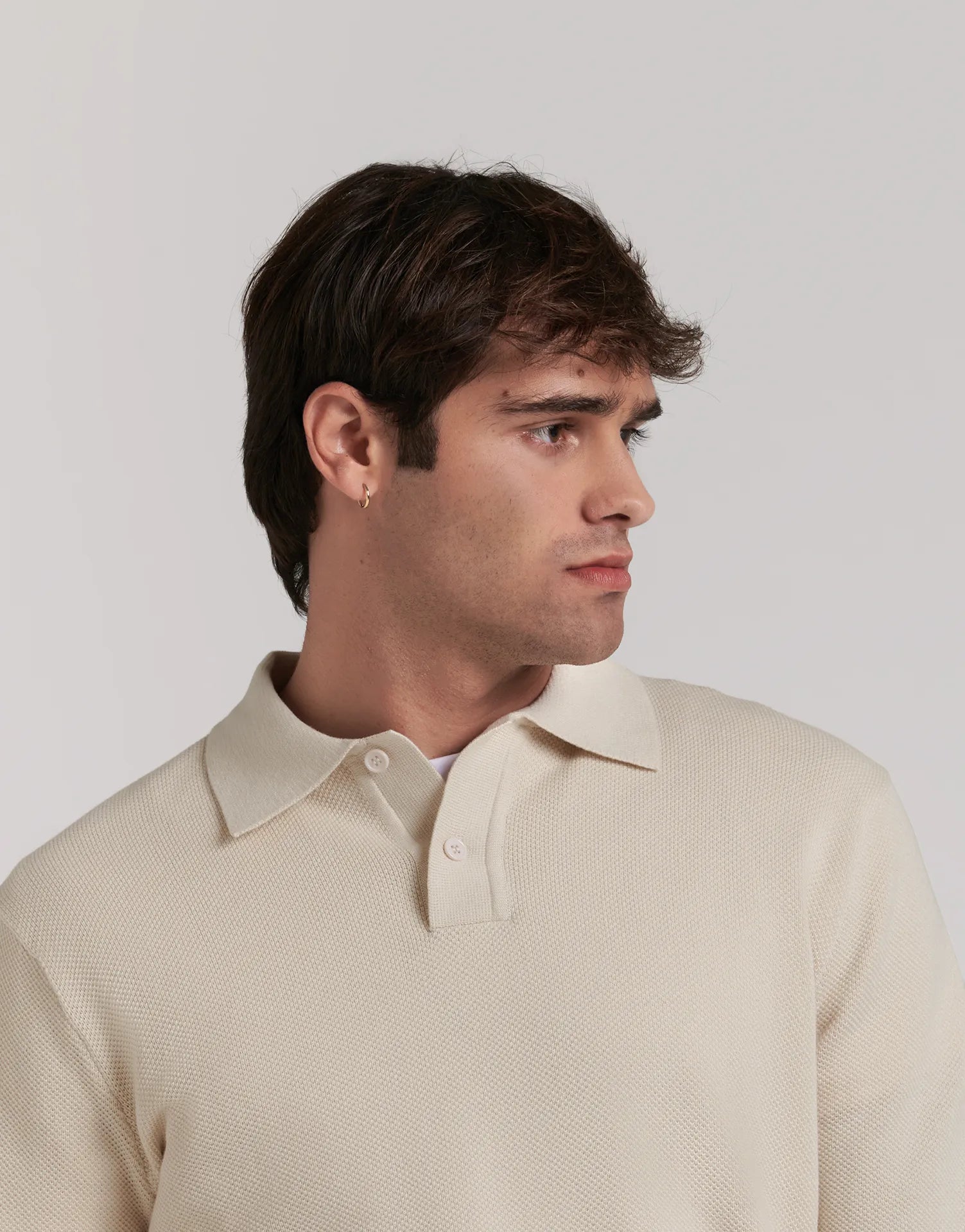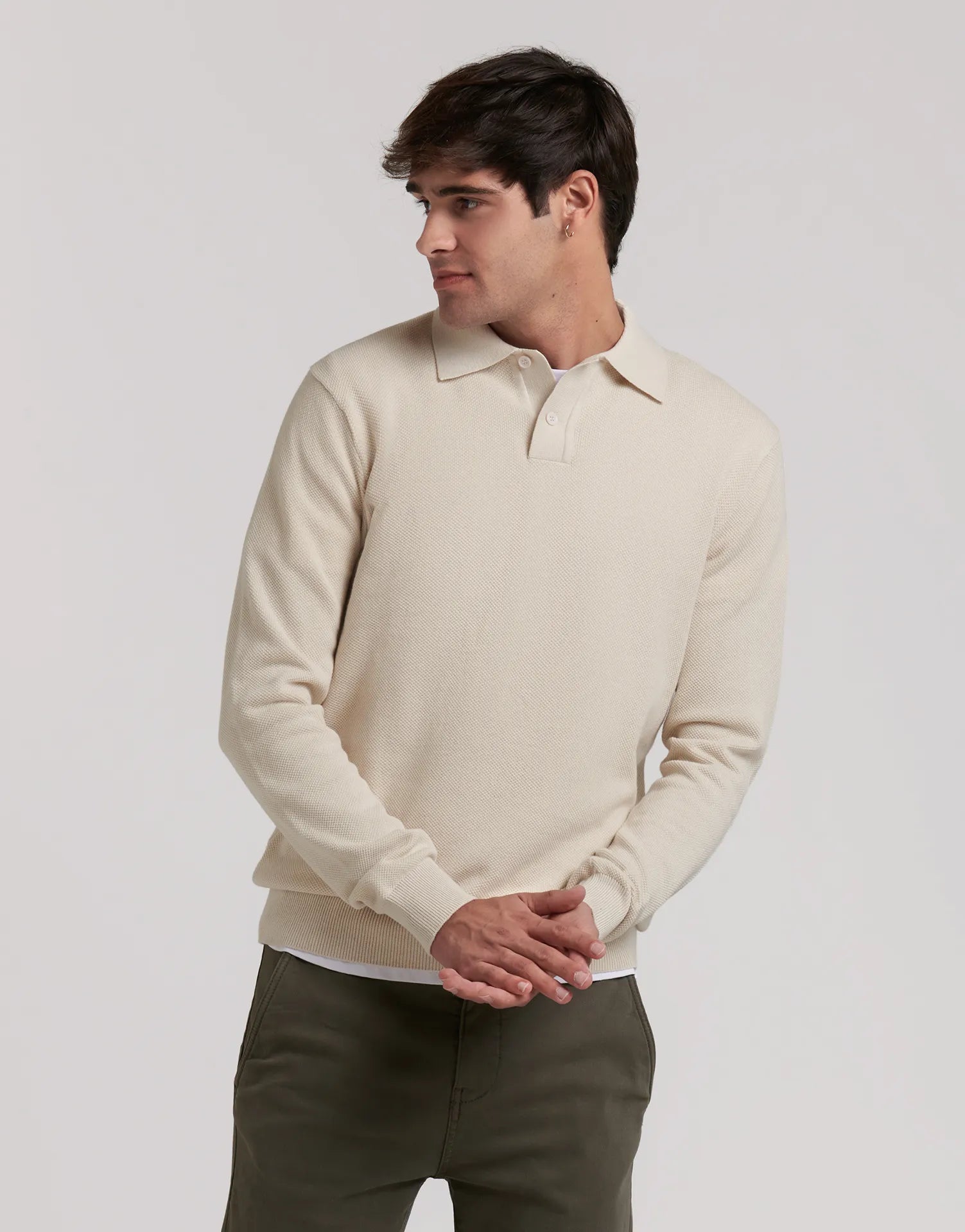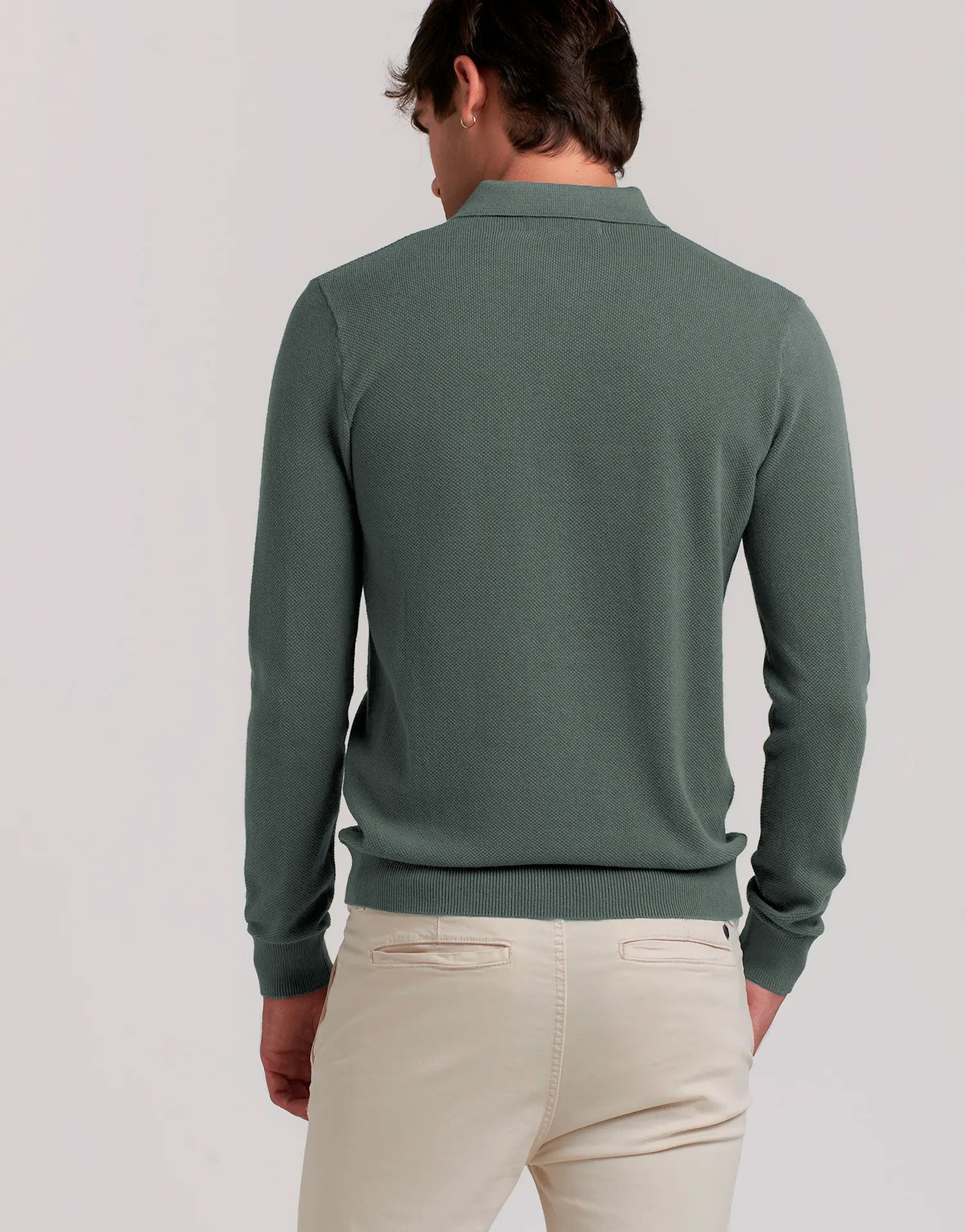 Este polo de manga larga en tejido de punto combina la elegancia del estilo clásico con la comodidad de un jersey ligero. Su confección en punto suave ofrece una textura agradable al tacto y un ajuste cómodo, ideal para looks casuales o más cuidados.