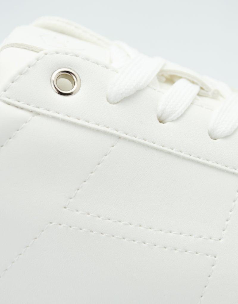 Zapatilla blanca lisa estilo bamba. Sneaker con cierre mediante cordones.