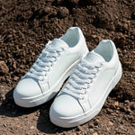 Las sneakers lisas con suela ancha de JVZ son el básico imprescindible para cualquier armario masculino. Su diseño minimalista, completamente blanco, aporta un toque limpio y moderno que combina con absolutamente todo, desde un look casual hasta un outfit más arreglado.